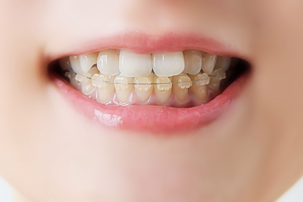 金属のブラケットより天然歯に近い色をしているため、目立ちにくいのが特徴です。また、金属製やプラスチック製のブラケットよりもむし歯になりにくい利点があります。