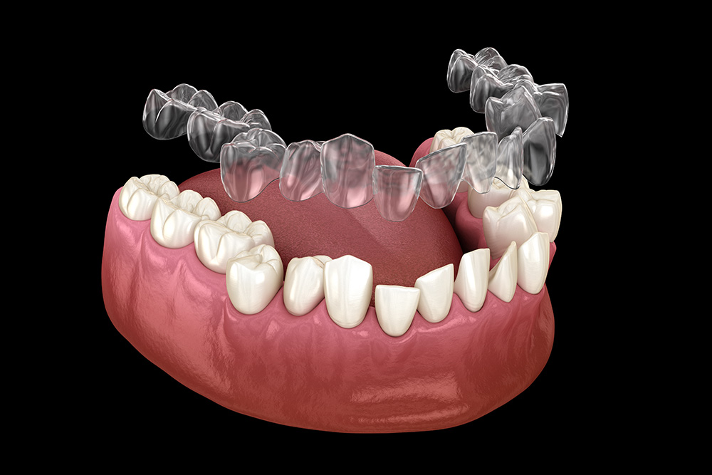 半透明のマウスピース(アライナー)を装着して行う矯正治療です。