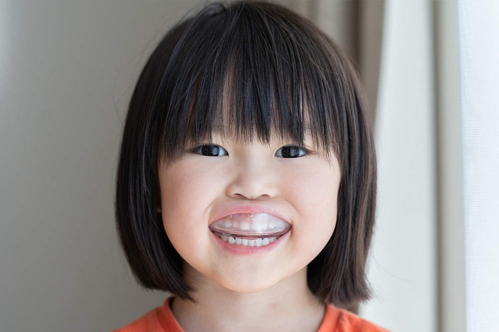 混合歯列期に使用する装置で、就寝時に加えて日中1〜2時間ほどの装着を推奨しています。